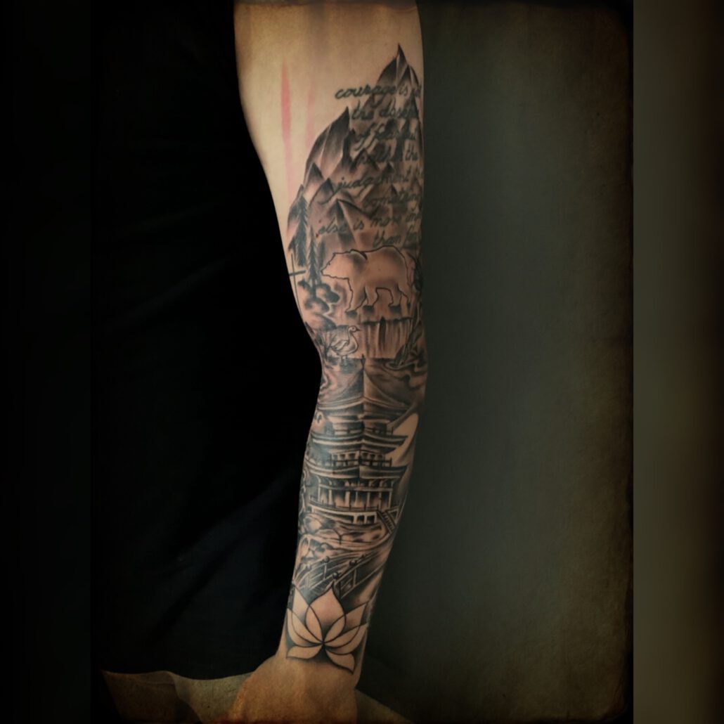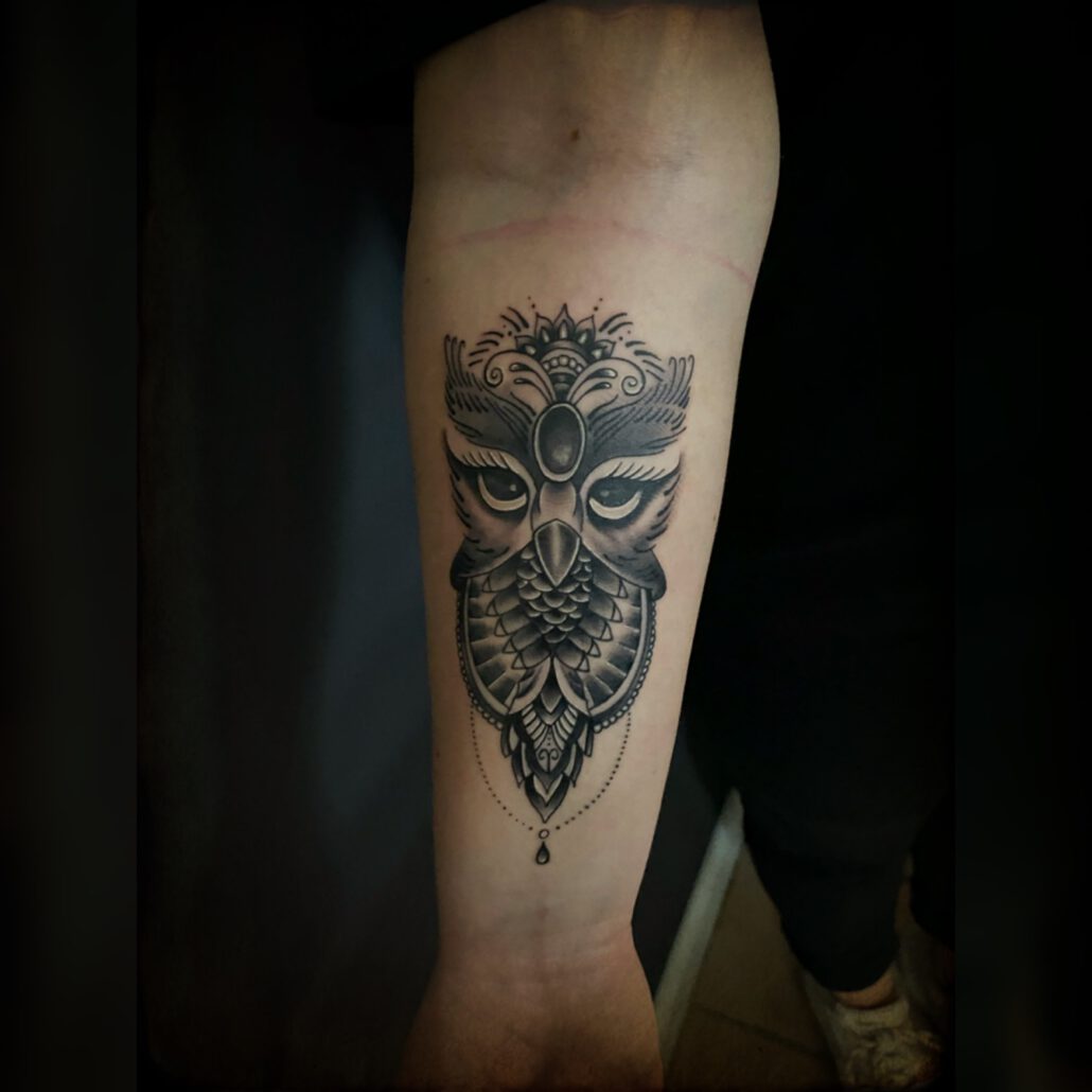 Mich faszinierte es schon immer, wenn Kunst auf die schönste Leinwand der Welt – die Haut – gebracht wird. Doch Kunst anderen unter die Haut zu bringen, war etwas Neues und ich fand gefallen daran. Das ganze ließ mich nicht mehr los, und so fing ich an diese Kunst zu erlernen. Meine ersten „wackligen“ Versuche – so kann man es nennen – entstanden in meinen eigenen Vier Wänden. Doch schon bald hatte ich den Schwung raus und so entstand peu à peu mein eigenes kleines Studio. Doch dies sollte so nicht bleiben, ich wollte mehr. Und so ging es für mich 2017 in ein Studio nach Rissen.