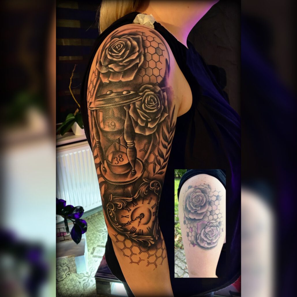 Mich faszinierte es schon immer, wenn Kunst auf die schönste Leinwand der Welt – die Haut – gebracht wird. Doch Kunst anderen unter die Haut zu bringen, war etwas Neues und ich fand gefallen daran. Das ganze ließ mich nicht mehr los, und so fing ich an diese Kunst zu erlernen. Meine ersten „wackligen“ Versuche – so kann man es nennen – entstanden in meinen eigenen Vier Wänden. Doch schon bald hatte ich den Schwung raus und so entstand peu à peu mein eigenes kleines Studio. Doch dies sollte so nicht bleiben, ich wollte mehr. Und so ging es für mich 2017 in ein Studio nach Rissen.